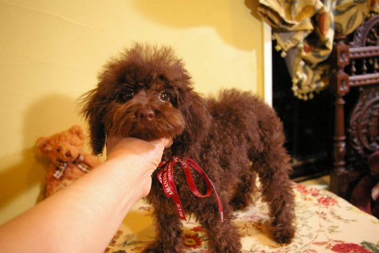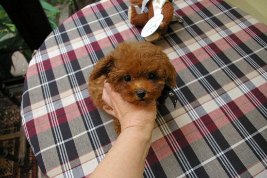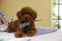 母犬:レッド、ティーカッププードル(1.5kg、 父;レッド、1.3kg)